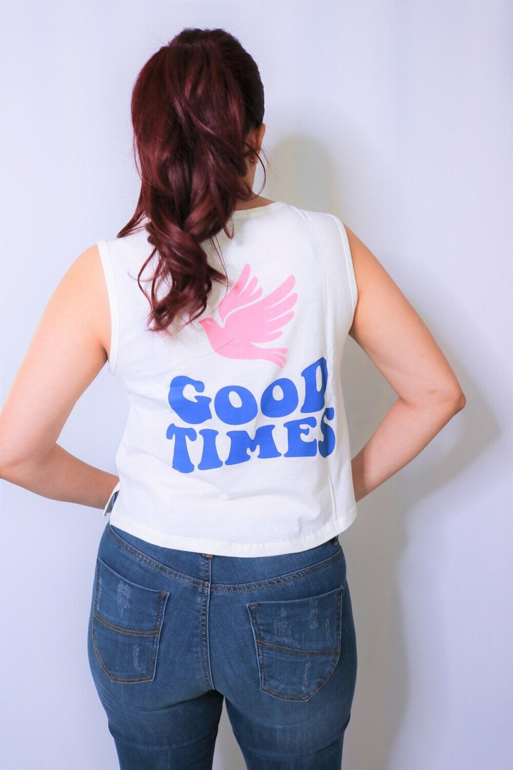 "Good Times" Slogan Tank Top Crew neck Sleeveless Cropped length