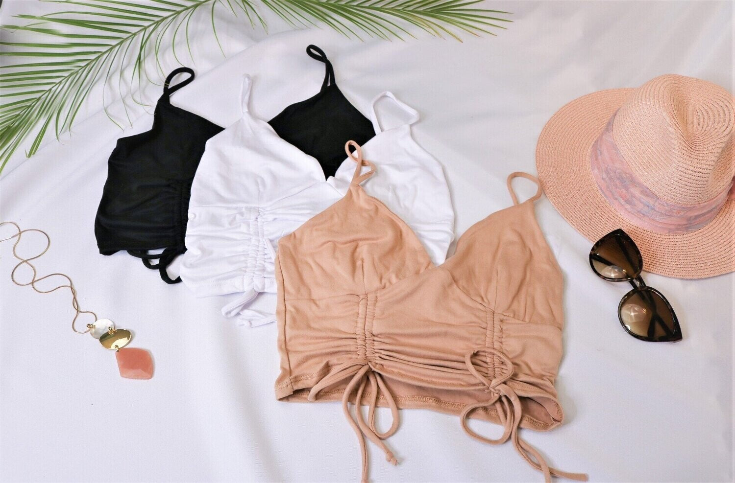 Front Double Shirring Tie Detail Sleeveless Top